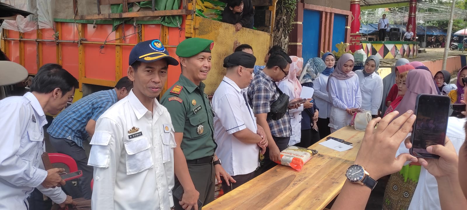 Pasi OPS Kodim 0424/Tanggamus menghadiri kegiatan penyaluran beras stabilisasi pasokan harga pangan yang dilaksanakan oleh pemerintah kabupaten Tanggamus, Bertempat di ruang terbuka hijau Soekarno Hatta, Kecamatan Kota Agung , Kabupaten Tanggamus, Rabu (06/12/2023).