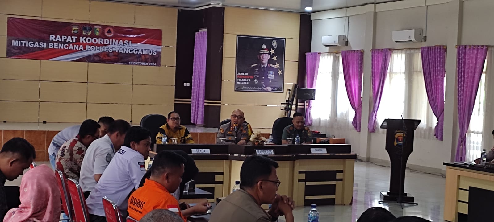 Tujuan dilaksanakan kegiatan Rakor Mitigasi bencana adalah untuk mengantisipasi potensi bencana alam kedepannya dan mengajak seluruh stakeholder yang ada untuk bersama-sama tanggap dalam menghadapi potensi bencana alam. Dalam Amanatnya Kapolres Tanggamus AKBP Rivanda menyampaikan saya mendapatkan perintah dari Kapolda Lampung untuk melaksanakan kegiatan ini, sekarang ini kita telah memasuki musim penghujan, wilayah kita memiliki beberapa titik yang rawan bencana, untuk itu kita perlu melakukan mitigasi terkait kerawanan bencana untuk itu saya mengajak kepada seluruh stakeholder yang ada di kabupaten Tanggamus ini sebagai langkah antisipasi terhadap segala sesuatu kemungkinan yang akan terjadi, dalam menghadapi kemungkinan yang bakal terjadi kita harus bersama-sama untuk mengatasinya.
