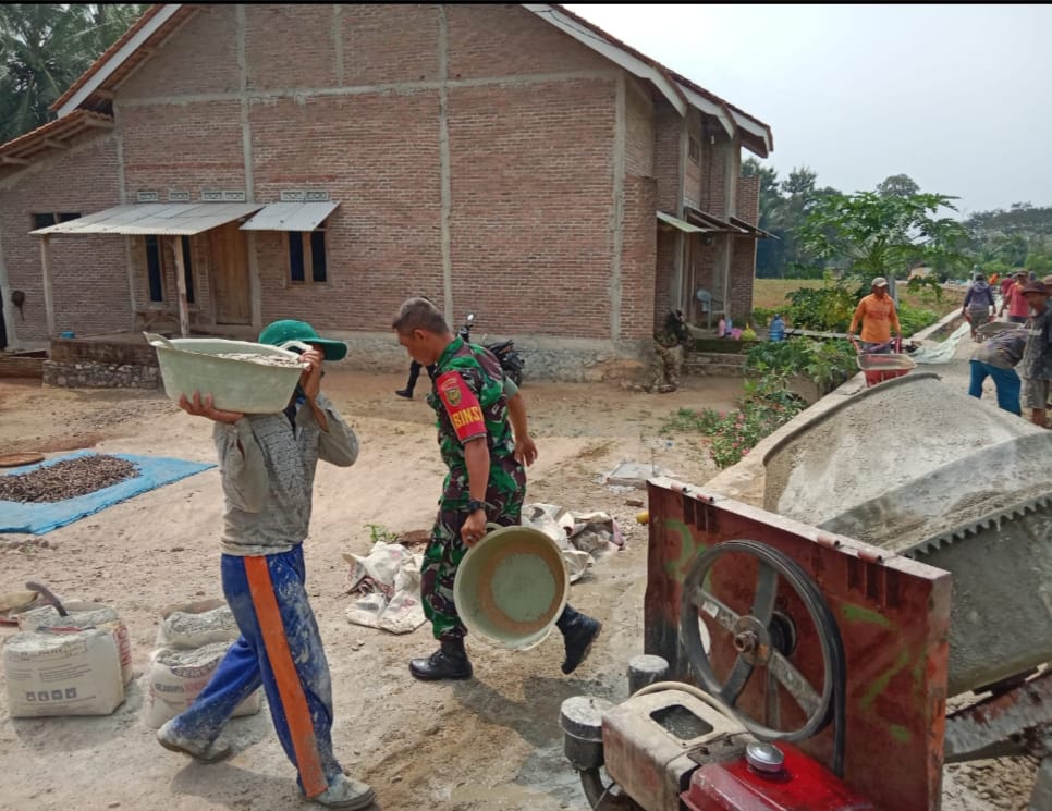 Hadir juga dalam pembangunan jalan rabat beton, Bhabinkamtibmas, Bripka Dede