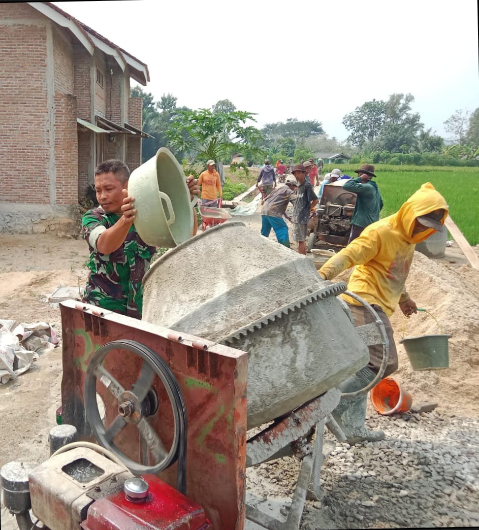 Dana Desa harus tepat sasaran untuk membangun desa, ini yang mengetuk hati Bintara Pembina Desa Babinsa Koramil 424-05/Pagelaran Serda Dovita Miska melaksanakan gotongroyong sekaligus pengawasan pembangunan jalan rabat beton dari anggaran dana desa bertempat di Pekon Puji harjo, Kec. Pagelaran, Kab. Pringsewu, Rabu (22/05/2024).