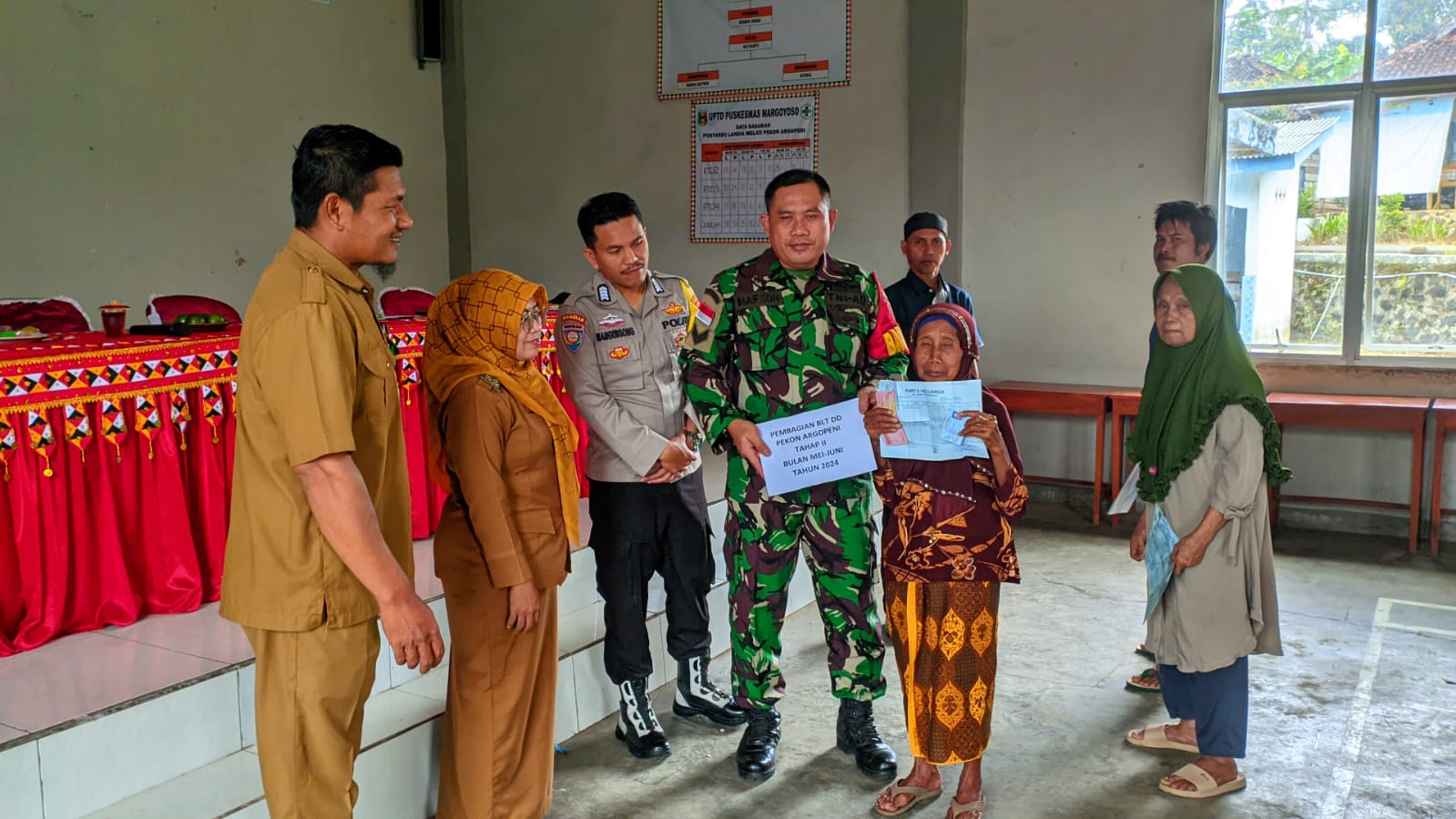 Pastikan Tepat Sasaran, Babinsa Koramil 424-05/Talangpadang Sertu Hapson menghadiri sekaligus lakukan pendampingan dan pengawalan kegiatan penyaluran bantuan langsung tunai dana desa (BLT DD) tahap II tahun 2024 oleh Pemerintah Pekon Argopeni bertempat Balai Pekon Argopeni, Kec. Sumberejo, Kab. Tanggamus, Selasa (25/06/2024).