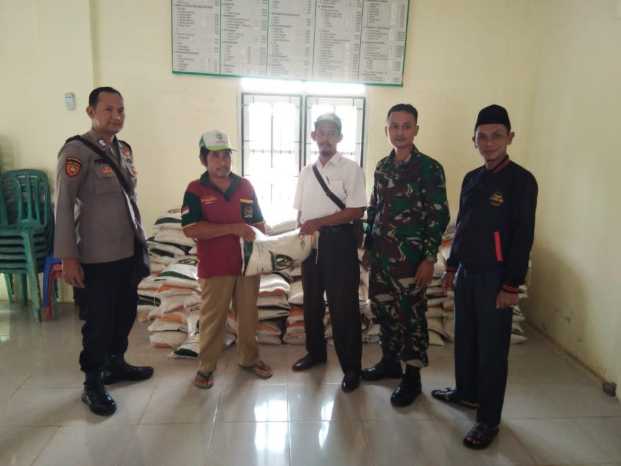 Peduli Masyarakat Kurang Mampu Babinsa Koramil 424-09/Sukoharjo Dampingan Pembagian Pangan Berupa Beras