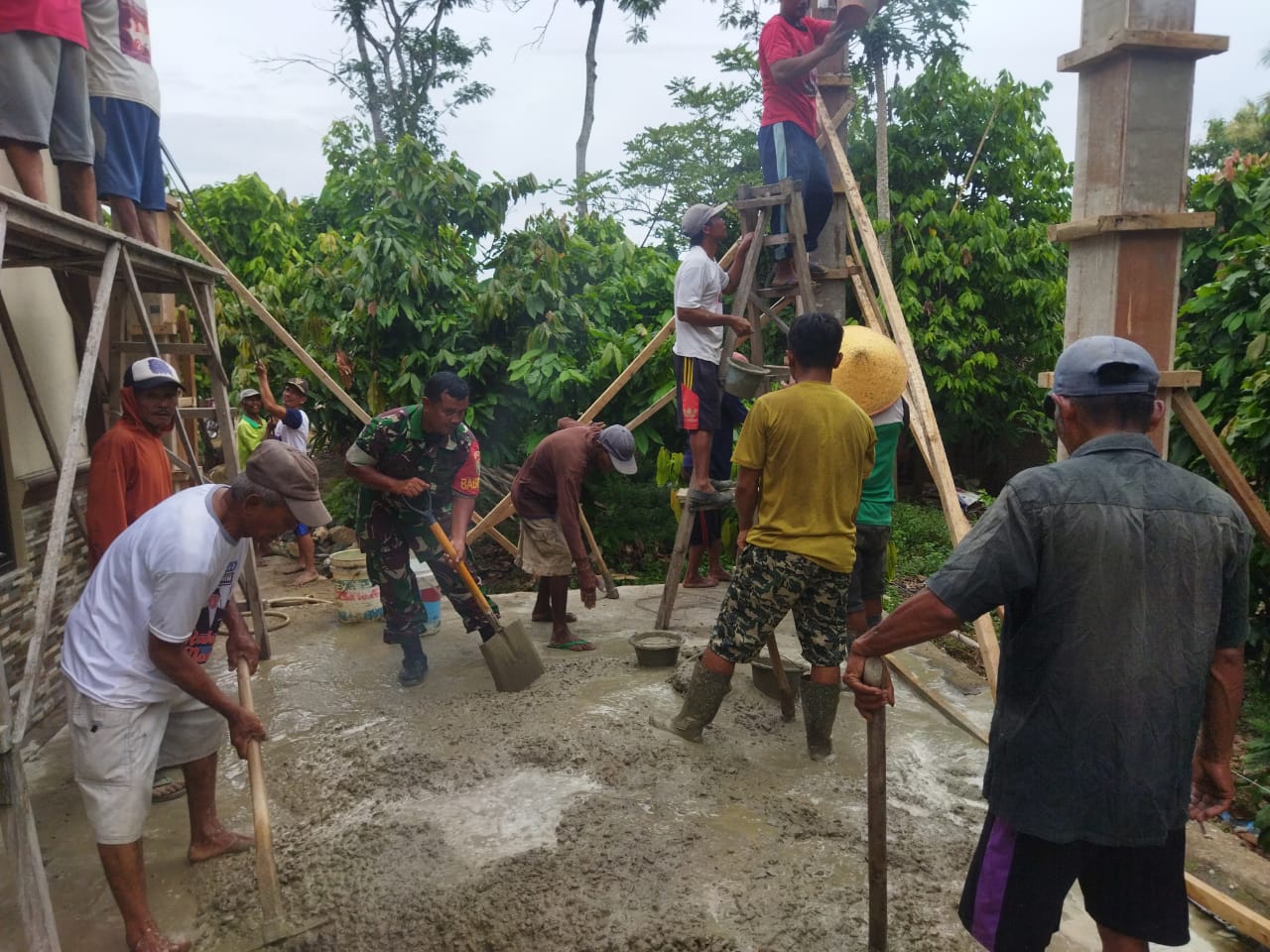 Serma Eko Purwanto menerangkan, dalam kegiatan tersebut aparat Babinsa bersama warga masyarakat setempat saling bahu membahu dalam membangun serambi mushola Baitul Muttaqin.