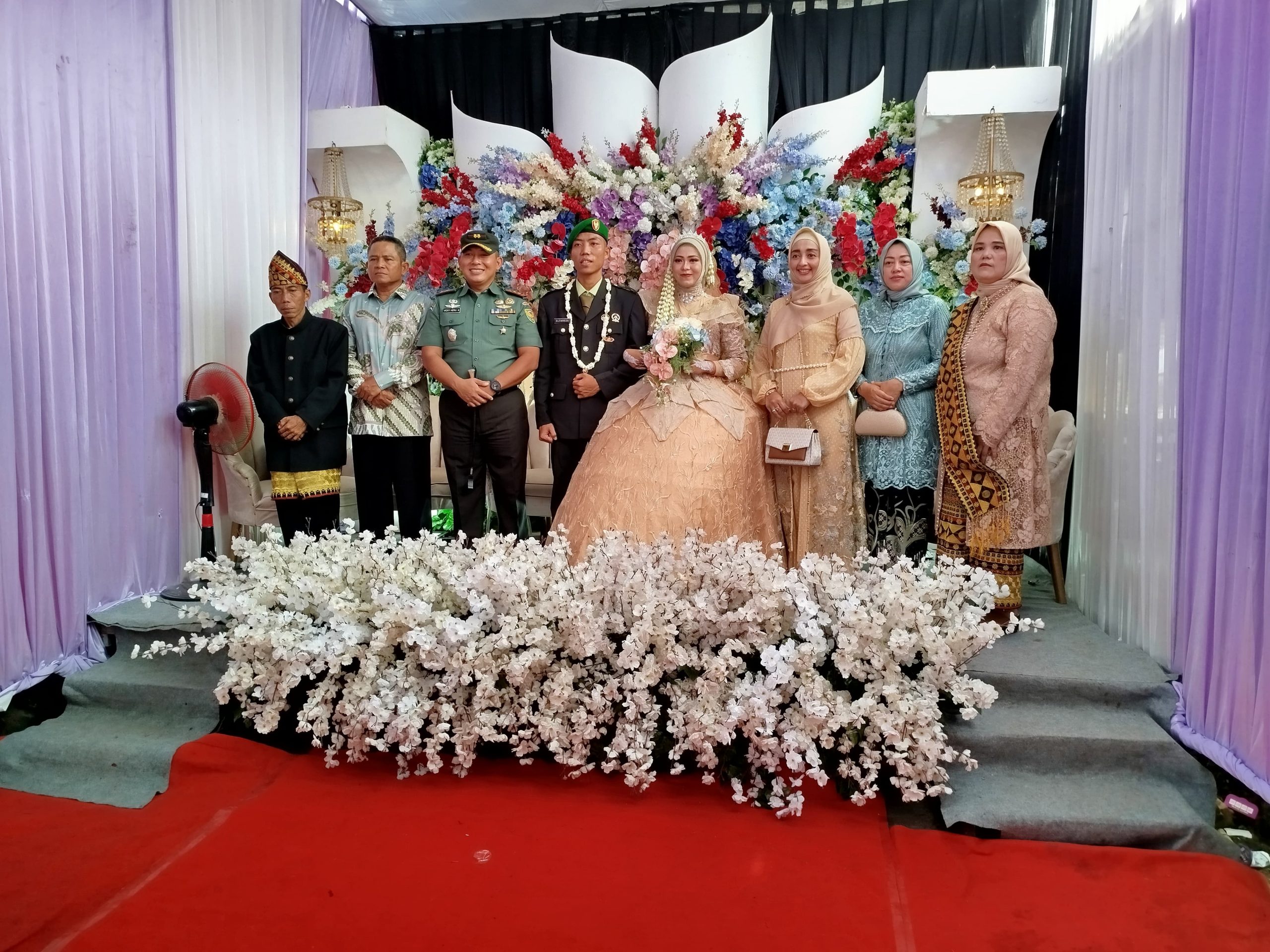 Komandan Kodim 0424/Tanggamus Letkol Inf Vicky Heru Harsanto. S.I.P., M.Si didampingi Ketua Persit Kartika Chandra Kirana Cabang XLVI Kodim 0424/Tanggamus Ny. Lia Vicky Heru Harsanto menghadiri undangan pesta pernikahan Pratu Angga Wijaya Alfareza Anggota Poktuud Kodim 0424/Tanggamus dan Andini Amd Pt.yang bertempat di jln Raya Karya Bakti Kelurahan Kuripan kec kotaagubg Kabupaten Tanggamus. Senin (16/12/24).