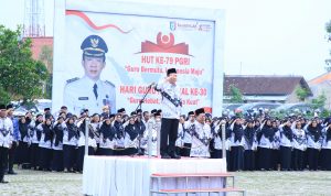 Pabung Kodim 0424/Tanggamus Kapten Inf P. Rahmat H, S.Sos mengikuti upacara Peringatan HUT PGRI Ke-79 dan Hari Guru Nasional (HGN) Ke-30 di Kabupaten Pringsewu bertempat di lapangan Pemda kabupaten Pringsewu. Senen (09/12/24).