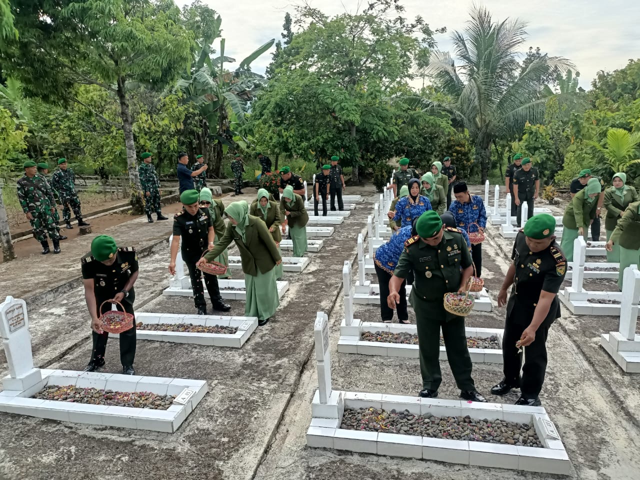 Dalam rangka memperingati Hari Juang TNI AD Ke-79, Kodim 0424/Tanggamus melaksanakan kegiatan ziarah rombongan ke Taman Makam Pahlawan Bahagia Kota Agung, Kab. Tanggamus, Kamis (12/12/2024).
