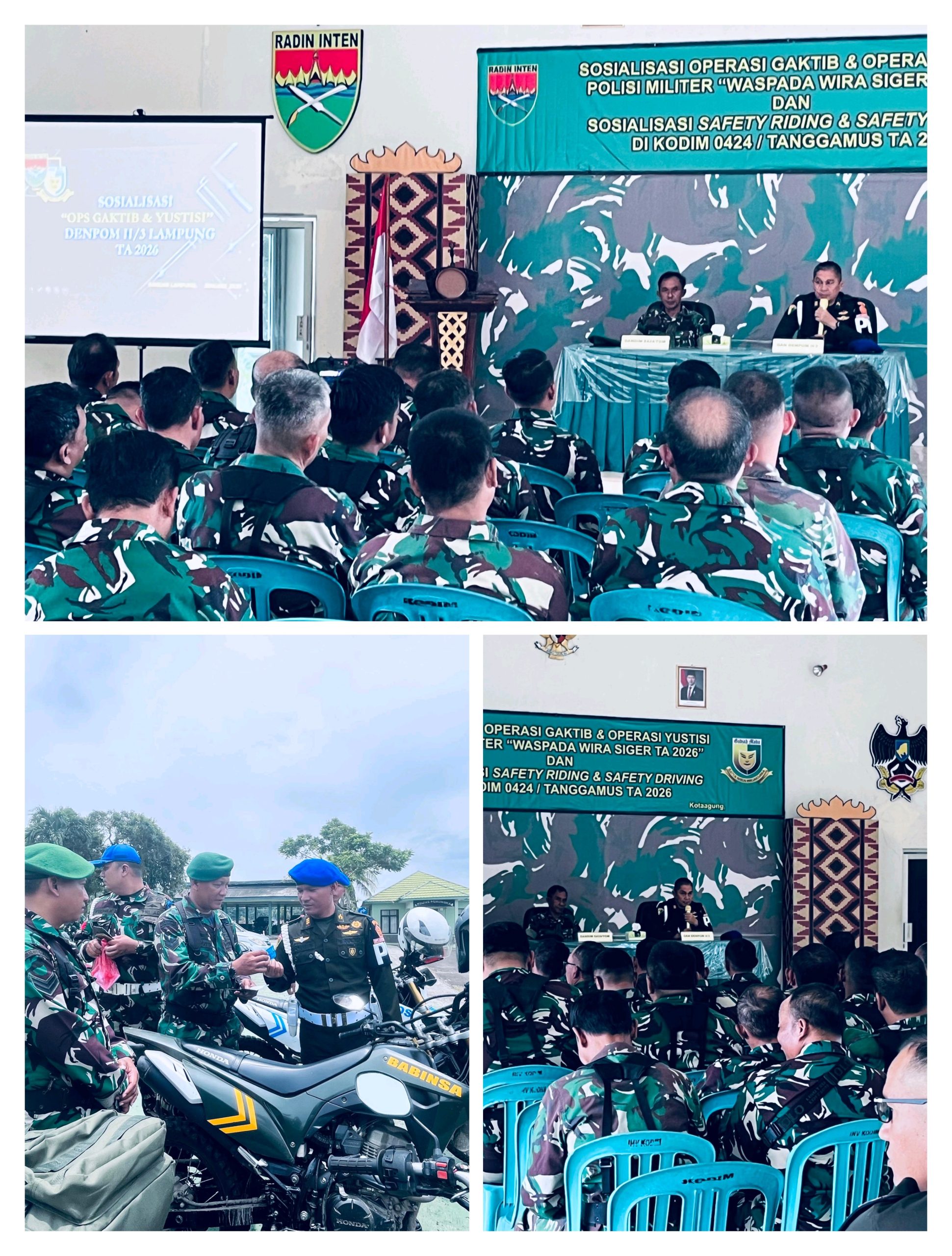 “Sosialisasi Ops Gaktib dan Yustisi ini merupakan langkah preventif untuk meminimalisasi pelanggaran serta menekan angka kecelakaan lalu lintas di lingkungan prajurit, khususnya dalam aspek safety riding dan safety driving,” ujarnya.