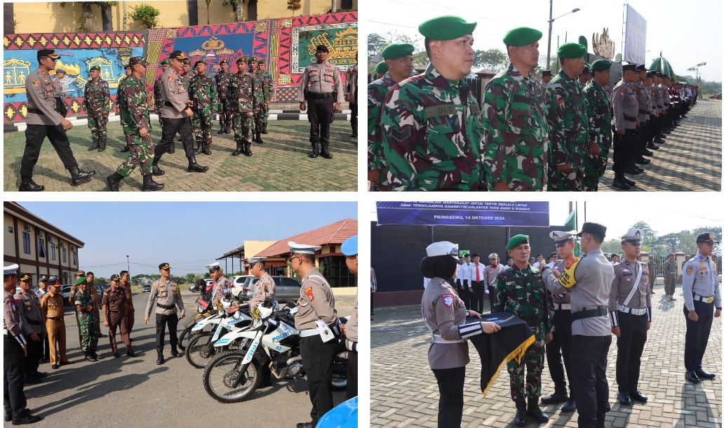 Personil Kodim 0424/Tanggamus mengikuti kegiatan Apel Gelar Operasi Zebra Polres Tanggamus dan Pringsewu tahun 2024 yang bertempat di Lapangan Apel Polres Tanggamus dan Pringsewu, Senin (14/10/2024).