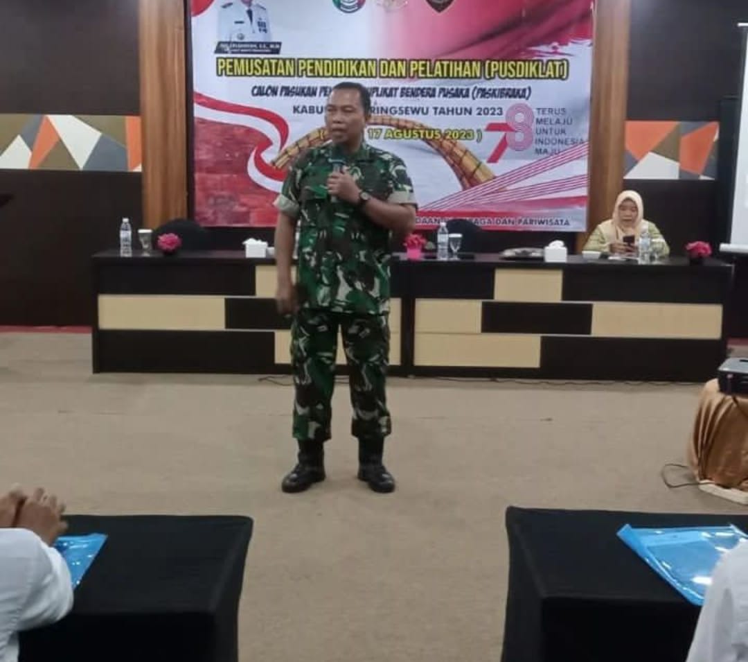 Plh Pabung Kodim 0424/Tanggamus Kapten Inf Redi Kurniawan Berikan Wawasan Kebangsaan Kepada Anggota Paskibraka Tingkat Kabupaten Pringsewu di Hotel Regency Kab Pringsewu. Senin (14/08/2023).