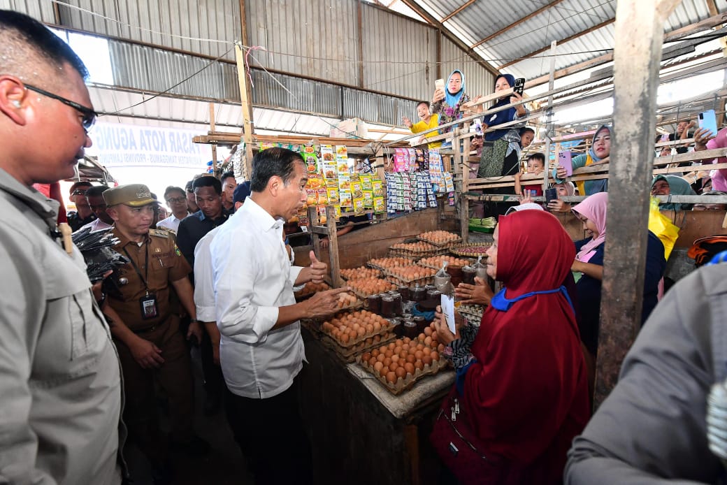 Presiden Jokowi Tinjau Pasar Kota Agung, Cek Harga dan Berikan Bantuan Modal Kerja.