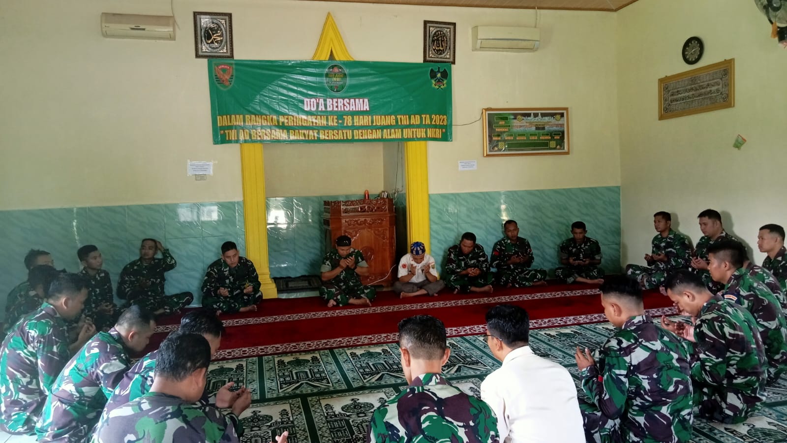 Kegiatan doa bersama memperingati Hari Juang Kartika TNI AD ke 78, bagi yang beragama islam dilaksanakan di Mushola AR Ribath Makodim dan di pimpin oleh Pasiter Kodim 0424/Tanggamus Lettu Kav Mahroy.