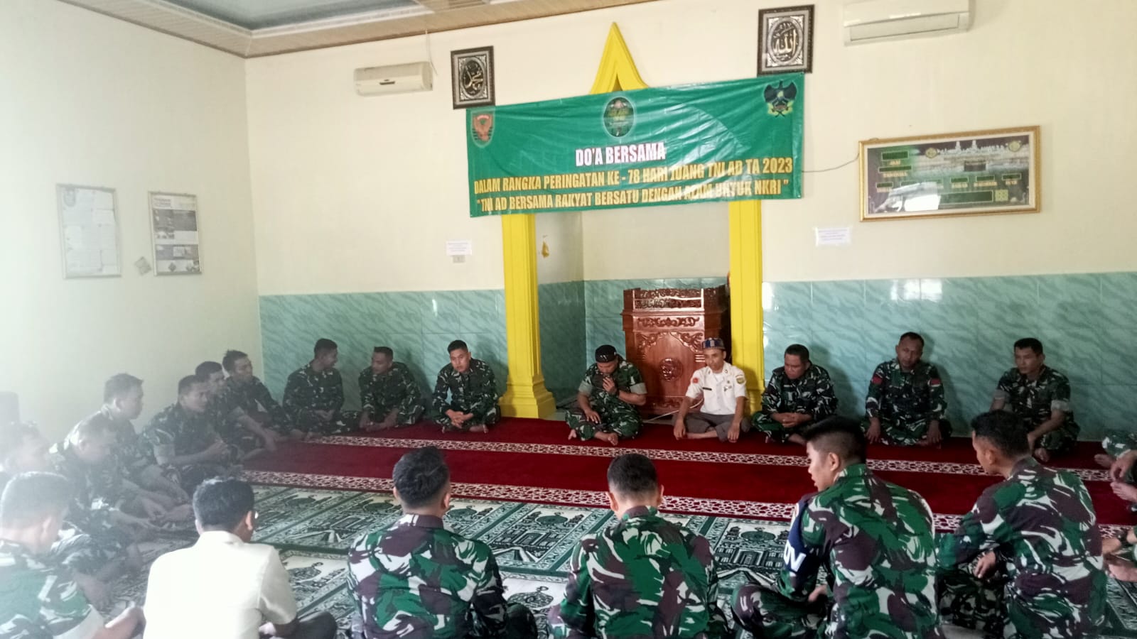 Kegiatan doa bersama memperingati Hari Juang Kartika TNI AD ke 78, bagi yang beragama islam dilaksanakan di Mushola AR Ribath Makodim dan di pimpin oleh Pasiter Kodim 0424/Tanggamus Lettu Kav Mahroy.