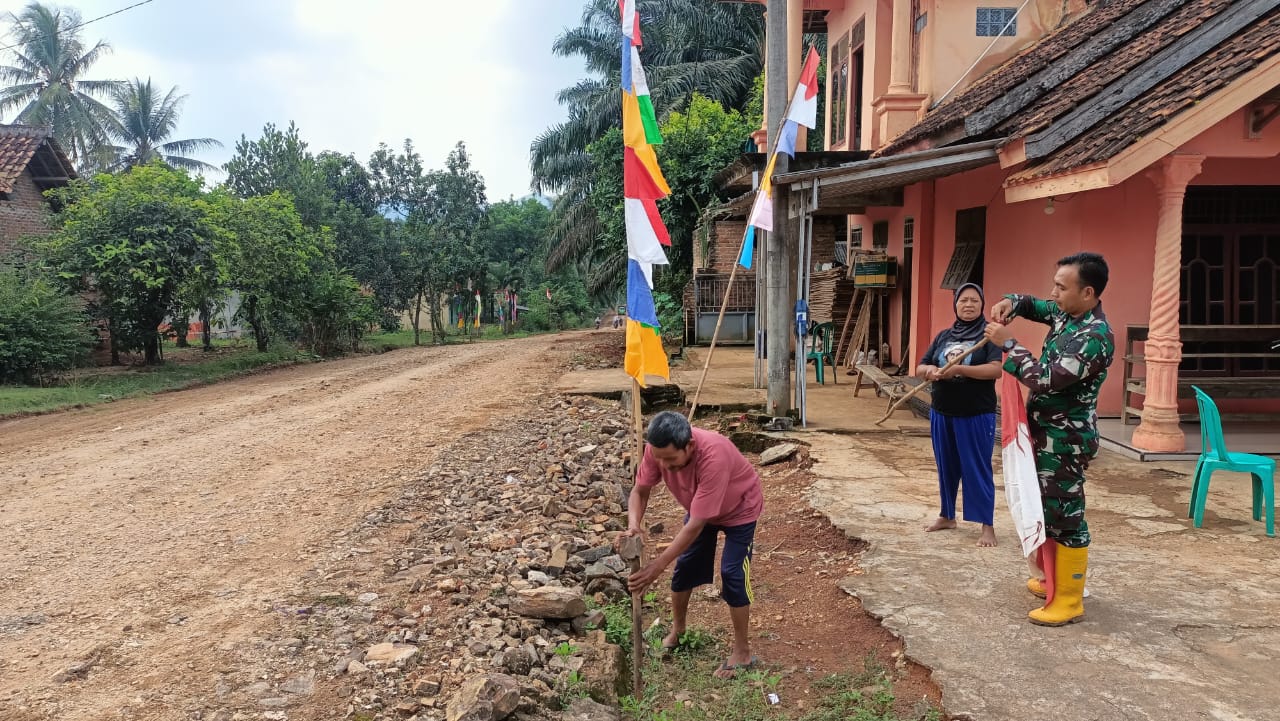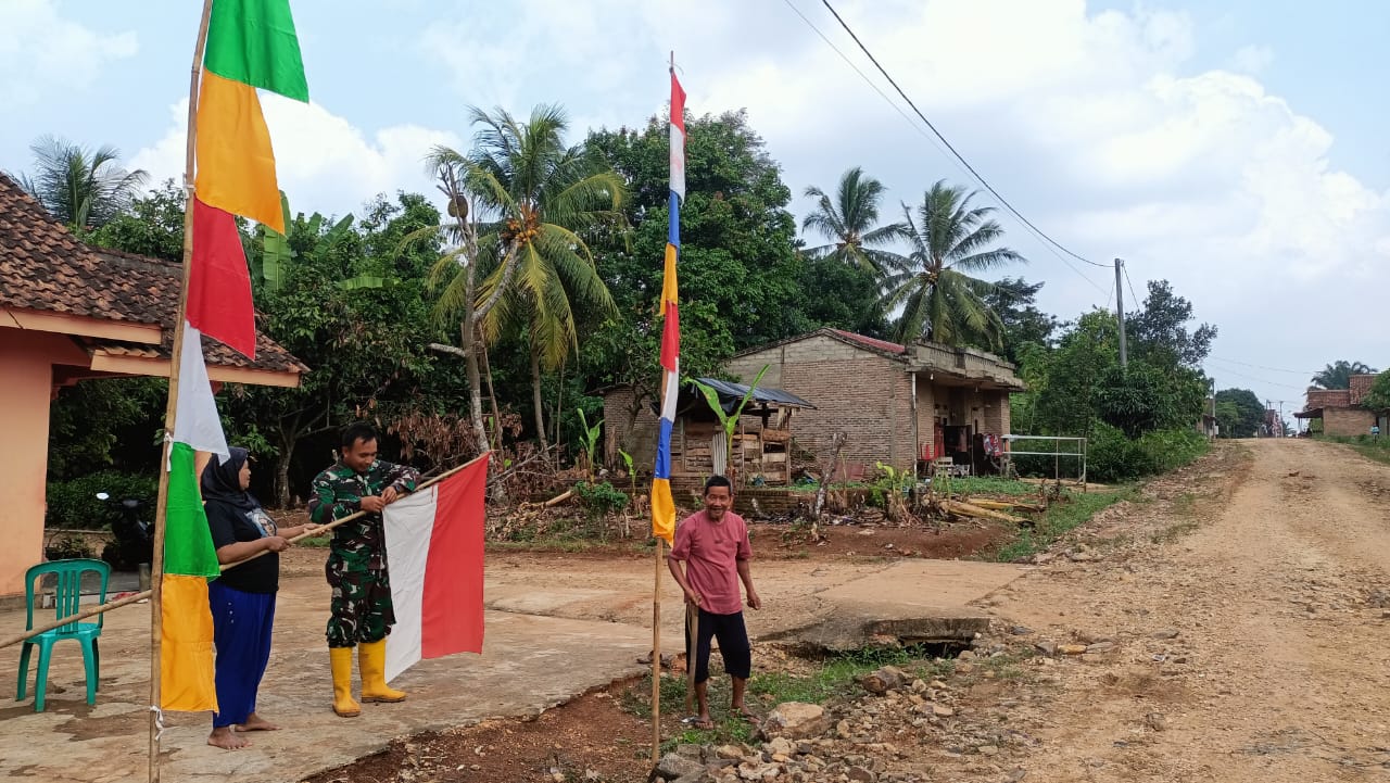 Dalam rangka memperkuat semangat nasionalisme, persatuan, dan kebanggaan terhadap negara, Serda Slamet turut langsung membantu warga dalam proses pemasangan bendera.