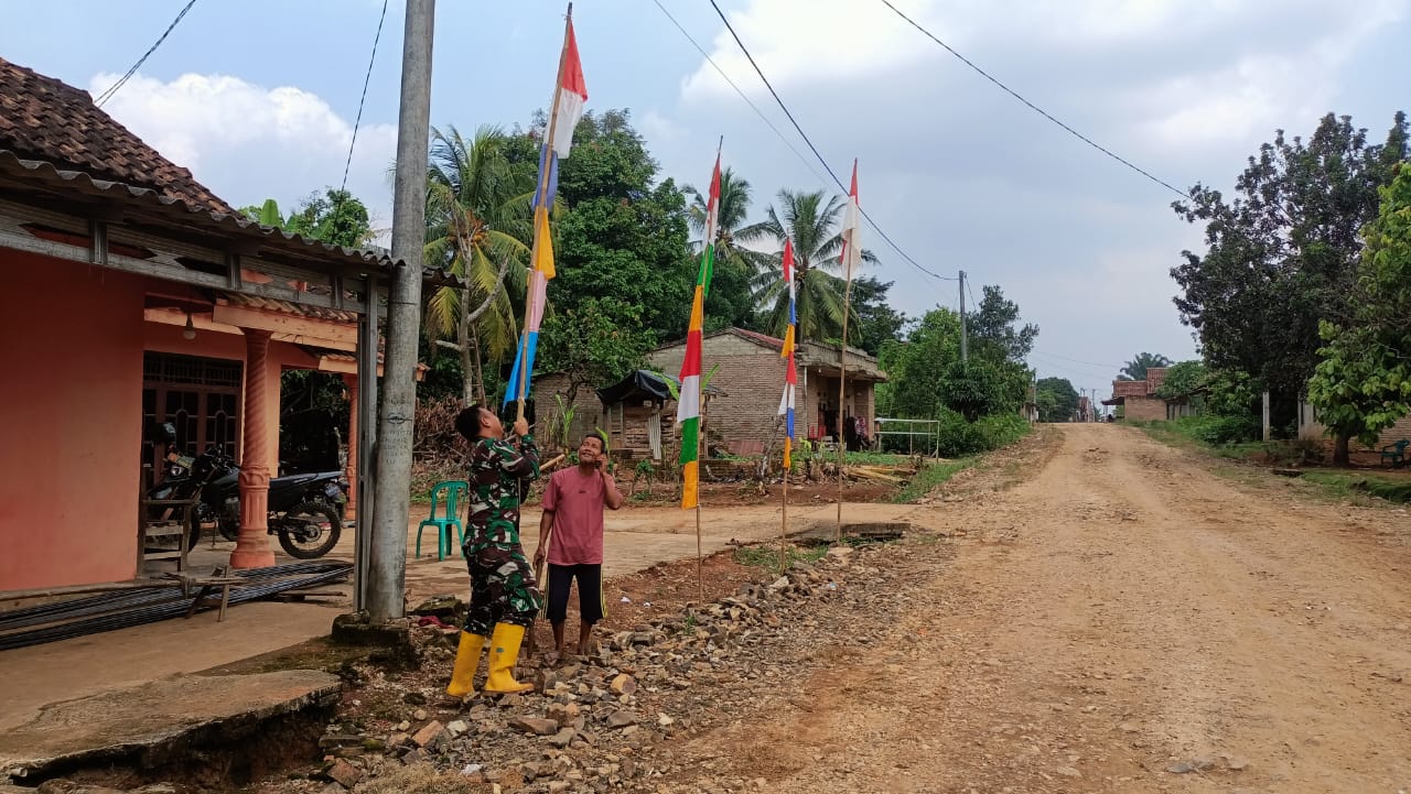 Dalam rangka memperkuat semangat nasionalisme, persatuan, dan kebanggaan terhadap negara, Serda Slamet turut langsung membantu warga dalam proses pemasangan bendera.