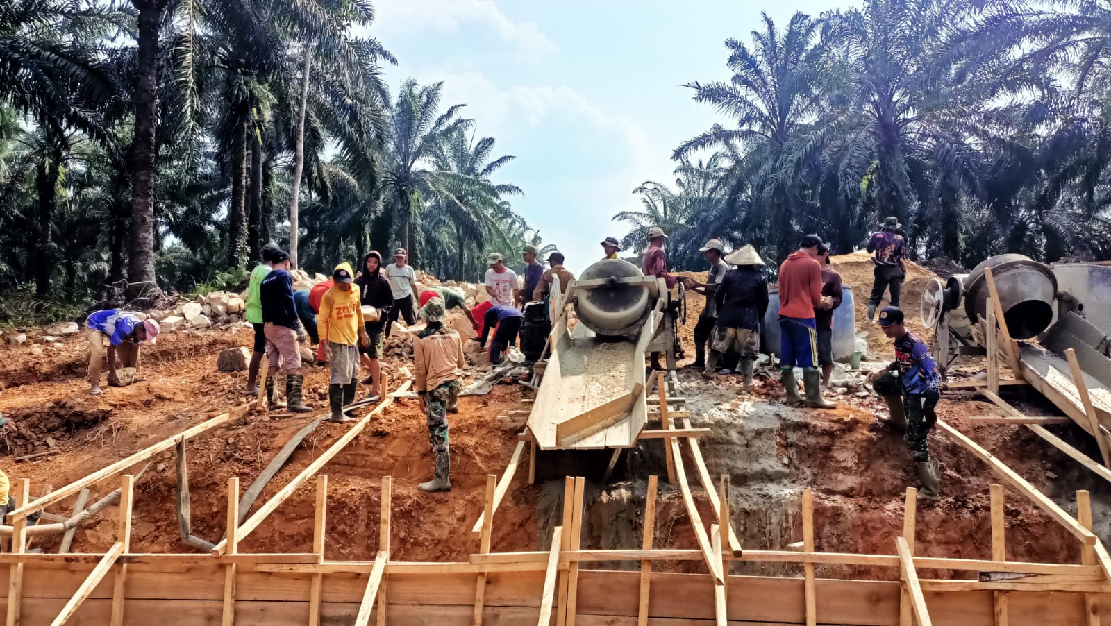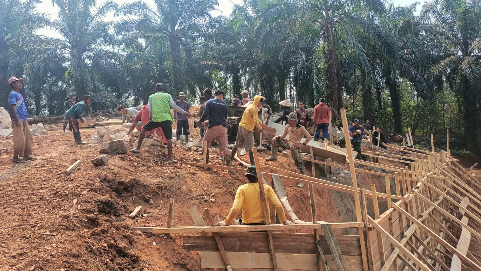 “Untuk pembuatan jalan masih dalam proses penimbunan dan perataan badan jalan yang saat ini dikerjakan,” ujar Kapten Inf Rahmat Kartolo selaku dan SSK.