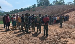 Pasiter Kodim 0424/Tanggamus Lettu Inf Jumiran saat mengambil Apel Pagi Anggota Satgas dan masyarakat mengatakan, Semua program TMMD ke-121 terus dikebut pekerjaannya, sebelum penutupan TMMD.