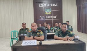 Secara Virtual Dandim 0424/Tanggamus Letkol Inf Vicky Heru Harsanto. S.I.P.,M.Si bersama Perwira Staf dan Danramil jajaran mengikuti pelatihan Public Speaking, bertempat di ruang Pamungkas Makodim, Kamis (25/1/2024).