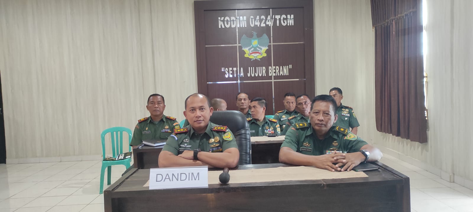 Secara Virtual Dandim 0424/Tanggamus Letkol Inf Vicky Heru Harsanto. S.I.P.,M.Si bersama Perwira Staf dan Danramil jajaran mengikuti pelatihan Public Speaking, bertempat di ruang Pamungkas Makodim, Kamis (25/1/2024).