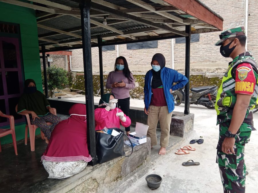 Tanggamus – Serda Seh Maulana, Koramil 424-08/Pulau Panggung melakukan pendampingan tim tracing dari Puskesmas setempat. Melaksanakan tracing warga yang kontak erat dengan pasien positif COVID-19 di wilayah Pulau Panggung. Jumat (11/02).