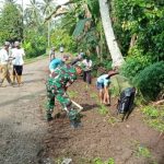Sertu Ahmad Irwandi bersama masyarakat Desa binaan melaksanakan aksi bersih atau gotong-royong untuk membersihkan parit dari rumput liar dan sampah.
