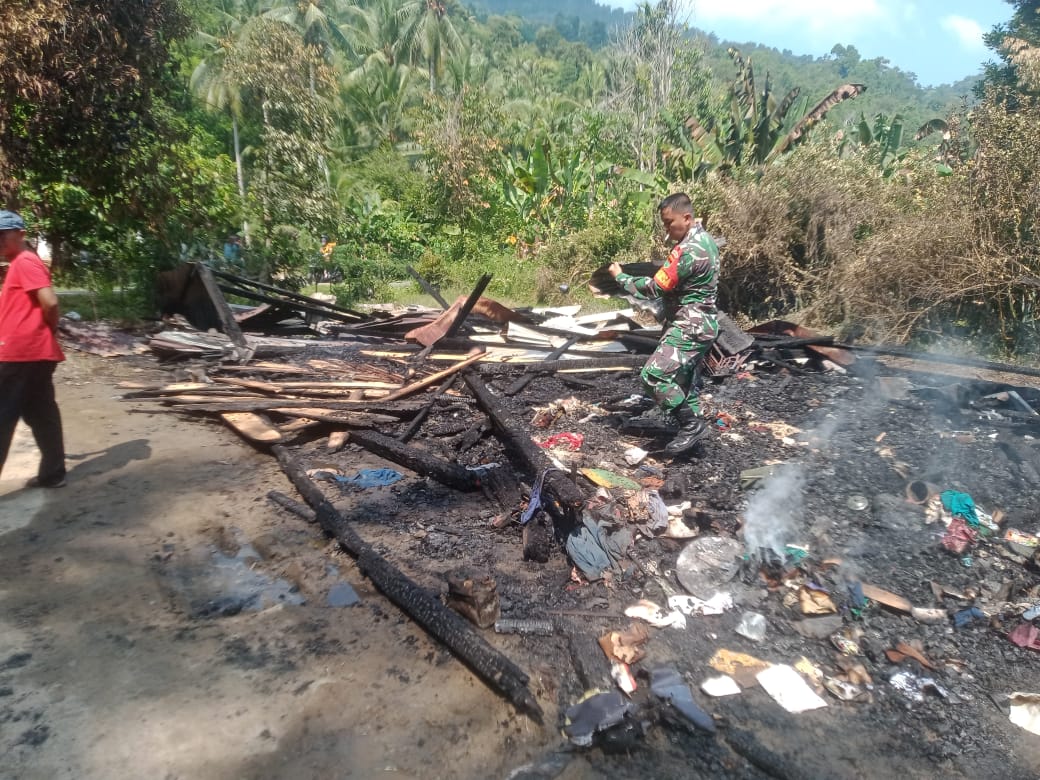Tak berselang lama, Babinsa Koramil 424-02/Wonosobo bersama aparat pekon tiba di lokasi untuk membantu proses evakuasi serta mengamankan area sekitar. Namun, karena bangunan rumah sebagian besar terbuat dari kayu, api dengan cepat melahap seluruh bagian rumah hingga rata dengan tanah.