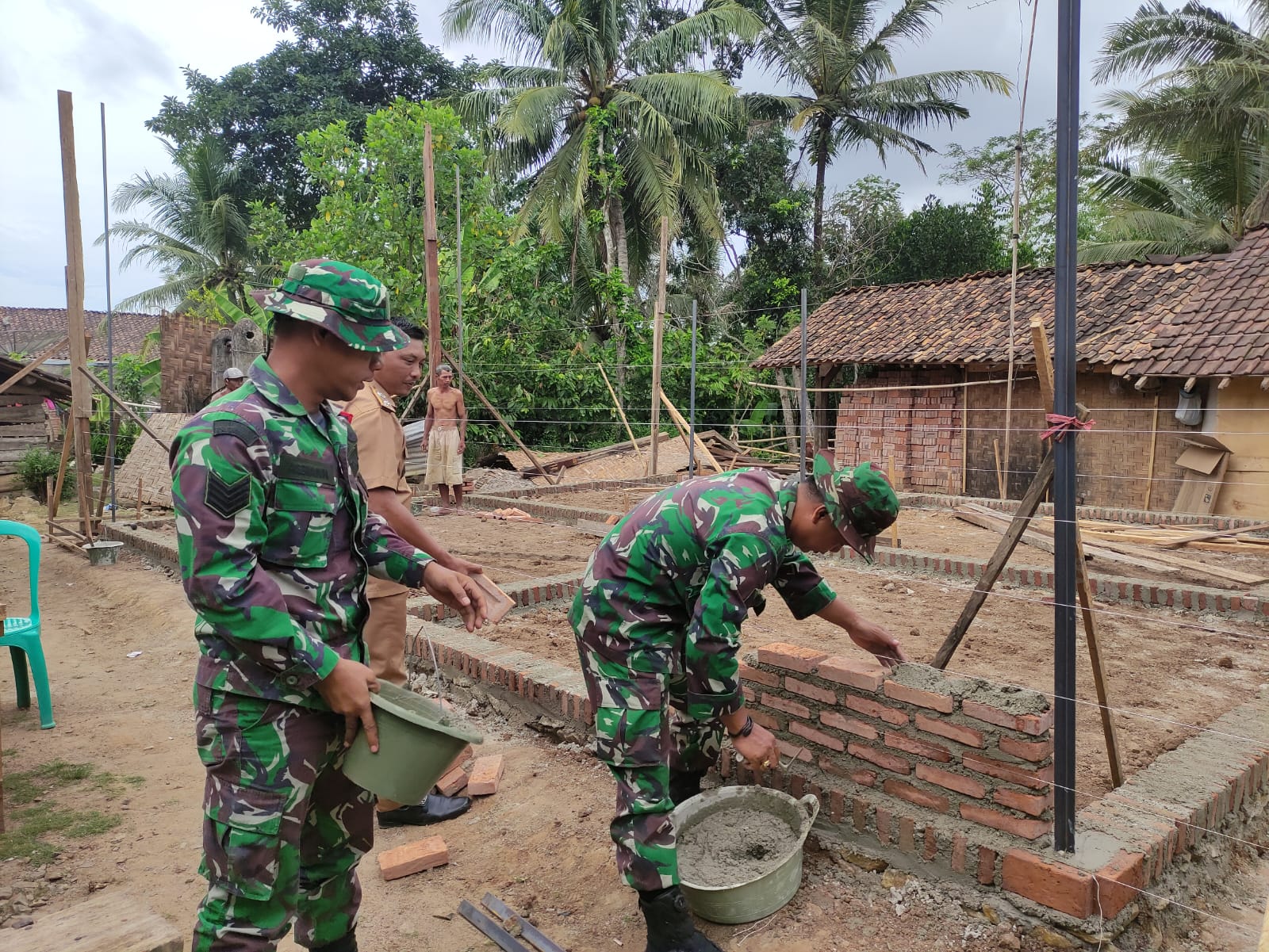 Babinsa Koramil 424-05/Pagelaran Serma Reno Bersama 3 orang anggota babinsa koramil 05/Pagelaran membantu membuat pondasi, untuk pembangunan rumah milik warga binaannya, Puji Setiani warga Pekon Bumiratu Kecamatan Pagelaran Kabupaten Pringsewu. Selasa (06/06/2023). program bedah rumah dari dinas sosial Anggaran TA. 2023.