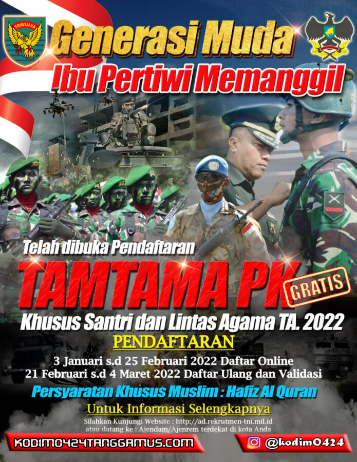 Telah Dibuka Pendaftaran Tamtama PK Khusus Santri Dan Lintas Agama TA. 2022redaksiJanuari 5, 2022Januari 7, 2022Informasi