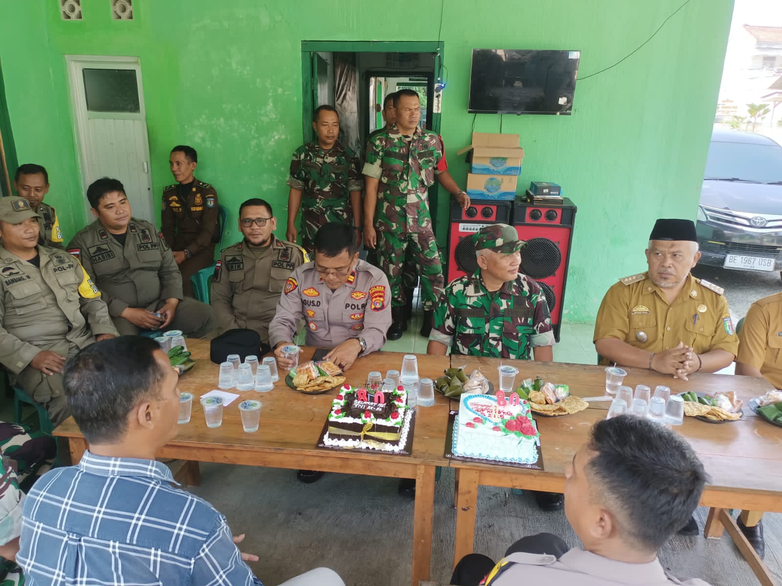 Rombongan yang terdiri dari Camat Camat A. Fauzan, S. Pd Pagelaran beserta rombongan dan Kapolsek Kapolsek Iptu Agus Darmawan beserta anggotanya datang membawa tumpeng dan kue ulang tahun. Kedatangan mereka tanpa pemberitahuan sebelumnya sontak membuat suasana Koramil berubah ceria.