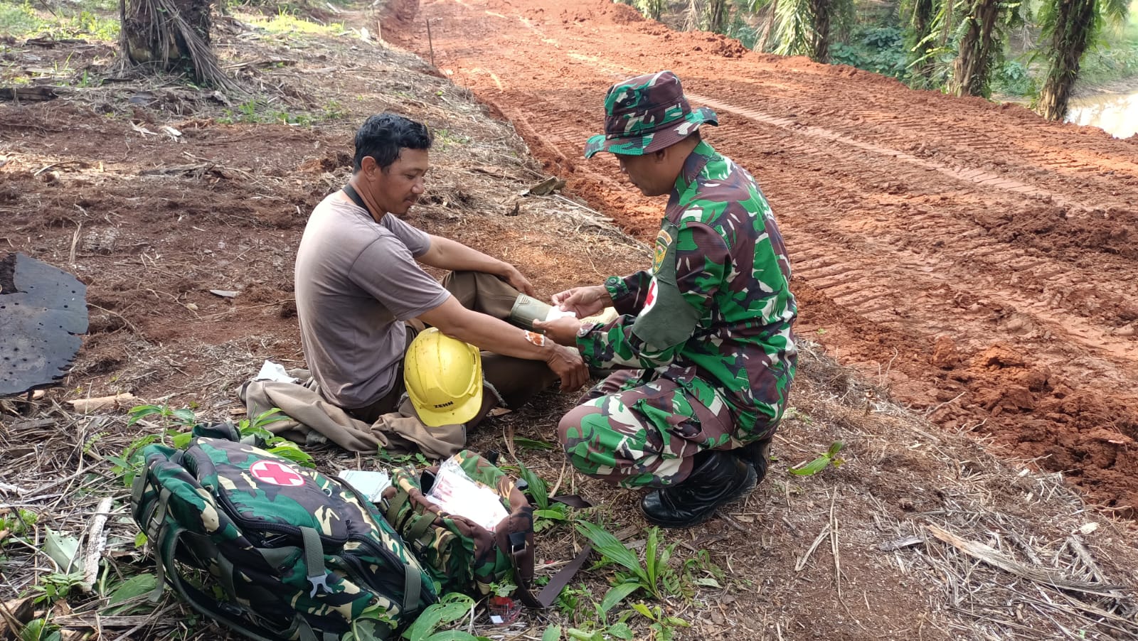 Setelah saya bersihkan dan sterilkan lukanya, Bapak Supardi segera saya laksanakan pemasangan kasa steril untuk melindungi lukanya, dan menghimbau pada warga yang lainya, walaupun semangat dalam bekerja tapi faktor keamanan agar selalu di utamakan,”Ungkap Serka Supratmin.