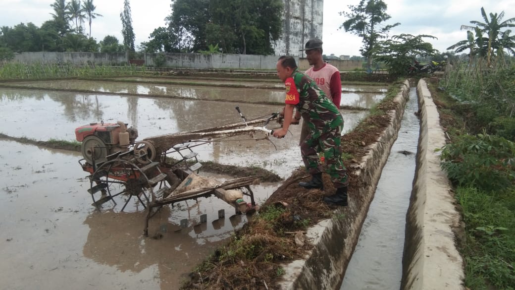 Tingkatkan Hasil Panen, Babinsa Koramil 424-07/Gadingrejo Dampingi Petani Mengolah Lahan Sawah