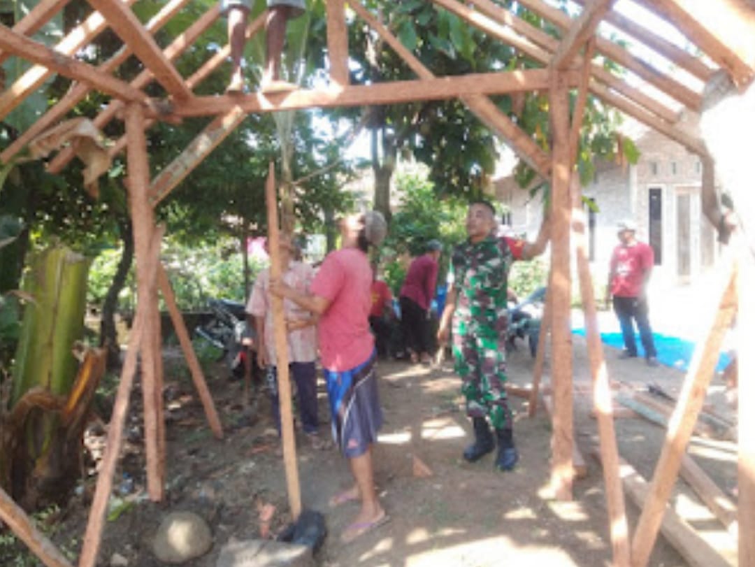 Guna meningkatkan keamanan di wilayah binaan, Babinsa Koramil 424-05/Pagelaran Serka Sulistiyo bersama warga melaksanakan gotong royong pembangunan pos ronda di Pekon Pasir Ukir Kecamatan Pagelaran, Kabupaten Pringsewu Lampung, Jumat (14/06/2024).