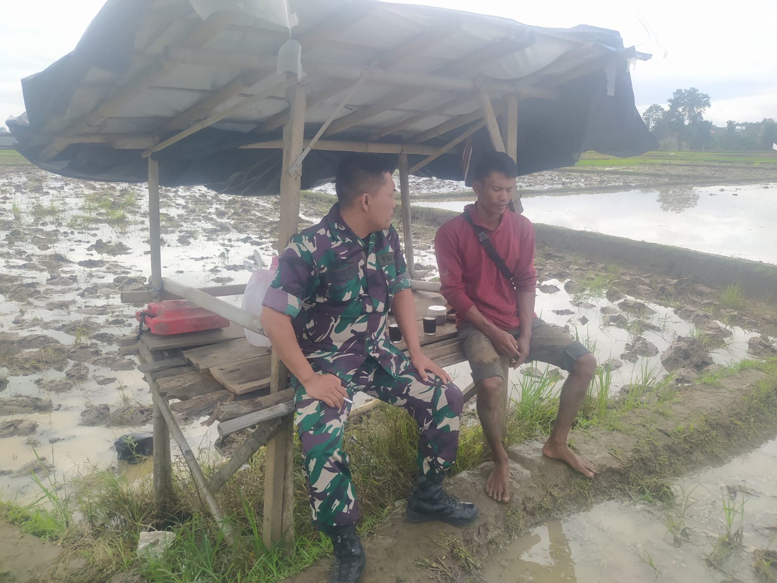 Dalam kesempatan tersebut, Sertu Nanang memantau sekaligus Melaksanakan komsos dengan petani padi seputar kondisi pertanian meliputi harga pupuk, kondisi air dan kondisi tanah sawah di wilayah mereka serta kemungkinan kendala yang ditemui para petani dalam menggarap sawah.