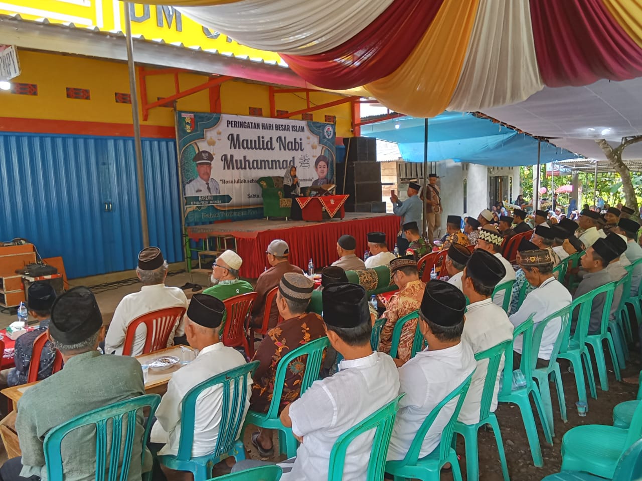 Upaya membangun ukuwah Islam di wilayah binaan, Babinsa Koramil 03/Kotaagung Kodim 0424/Tanggamus Kopda Mardiyansyah menghadiri Maulid Nabi Muhammad SAW yang di gelar di Pekon Tanjungan Kecamatan Pematang Sawah Kabupaten Tanggamus, Sabtu (I2/10/2024).