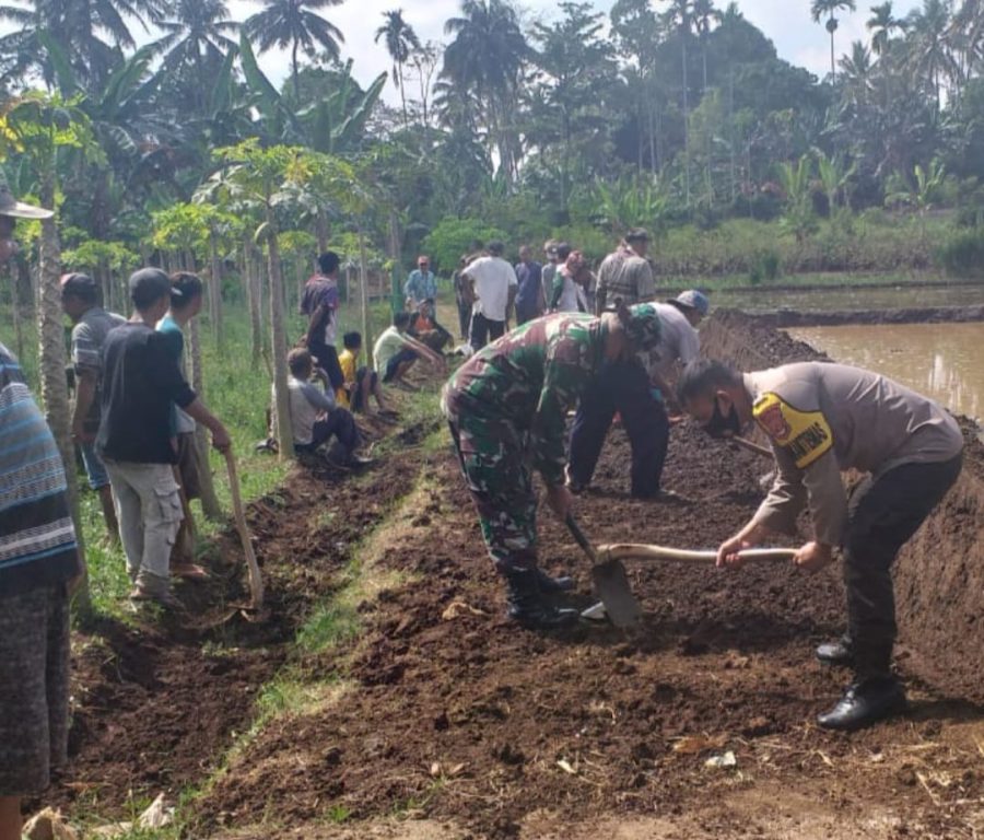Dalam upaya mempermudah akses warga dalam beraktivitas sehari hari dan upaya untuk mewujudkan pemerataan pembangunan di Pekon Binaannya Sertu Hafson Anggota Koramil 424-04/Talang Padang melaksanakan kegiatan gotongroyong bersama warga dipekon Argomulyo Kec. Sumberejo. Rabu (16/03/22).